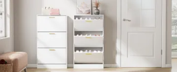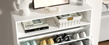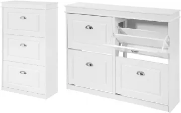 क्या आप जूतों के अव्यवस्थित फर्श से तंग आ चुके हैं? हमारे कॉम्पैक्ट सफेद जूता कैबिनेट के साथ समाधान खोजें जो आसानी से 20 जोड़ी से अधिक जूते रखता है। किसी भी सजावट में सहजता से घुलने-मिलने के लि